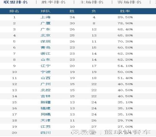 CBA积分榜最新排名出炉!上海锁定第1广东第3:辽篮冲前八难了