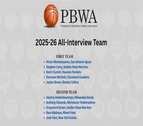 2025-26赛季的上述奖项得主将于本周公布。职业篮球作家协会(PBWA)由200多名作家和编辑组成,他们定期为报纸、杂志和在线新闻媒体报道NBA和WNBA赛事。