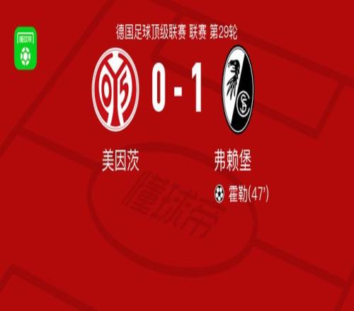 北京时间4月13日德国足球顶级联赛 联赛 第29轮,美因茨主场对阵弗赖堡。弗赖堡霍勒破门。最终比分美因茨 0-1 弗赖堡。