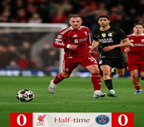 北京时间4月15日,在欧冠1/4决赛次回合的比赛中,利物浦半场过后主场0-0与巴黎圣日耳曼战平,两回合总比分仍0-2落后于对手。