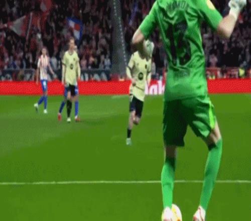 比赛的第6分钟,埃里克-加西亚回传球,霍安-加西亚停球失误,导致马竞取得领先。从慢镜头来看,球场草坪不够平整,球在草坪上蹦蹦跳跳,是霍安-加西亚停球失误的原因之一。