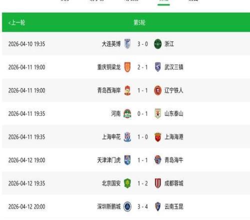 上海滩德比大战中,上海申花主场 1比0 小胜上海海港,拿下关键三分。比赛下半场,海港外援加布里埃尔在突破时遭遇重伤,可能预计缺席 6 个月以上,基本宣告赛季报销。其他场次方面,升班马重庆铜梁龙 2-1 击败武汉三镇,5 轮保持不败,以 11 分位列积分榜次席;山东泰山 1比0 小胜河南队,瓦科打入制胜球;辽宁铁人与青岛西海岸 1比1 战平,李浩然补时绝平救主;天津津门虎主场1比1被青岛海牛绝平;大连英博3比0胜浙江队;深圳新鹏城队主场以3比4不敌云南玉昆队。