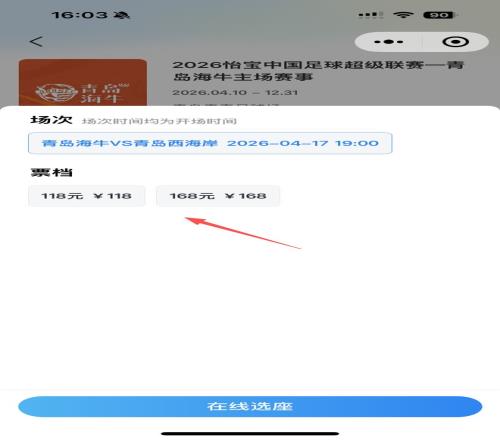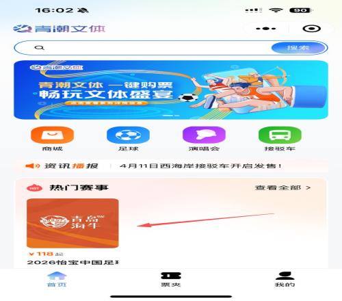 2.首页找到【青岛海牛VS青岛西海岸】专属购票入口,点击进入